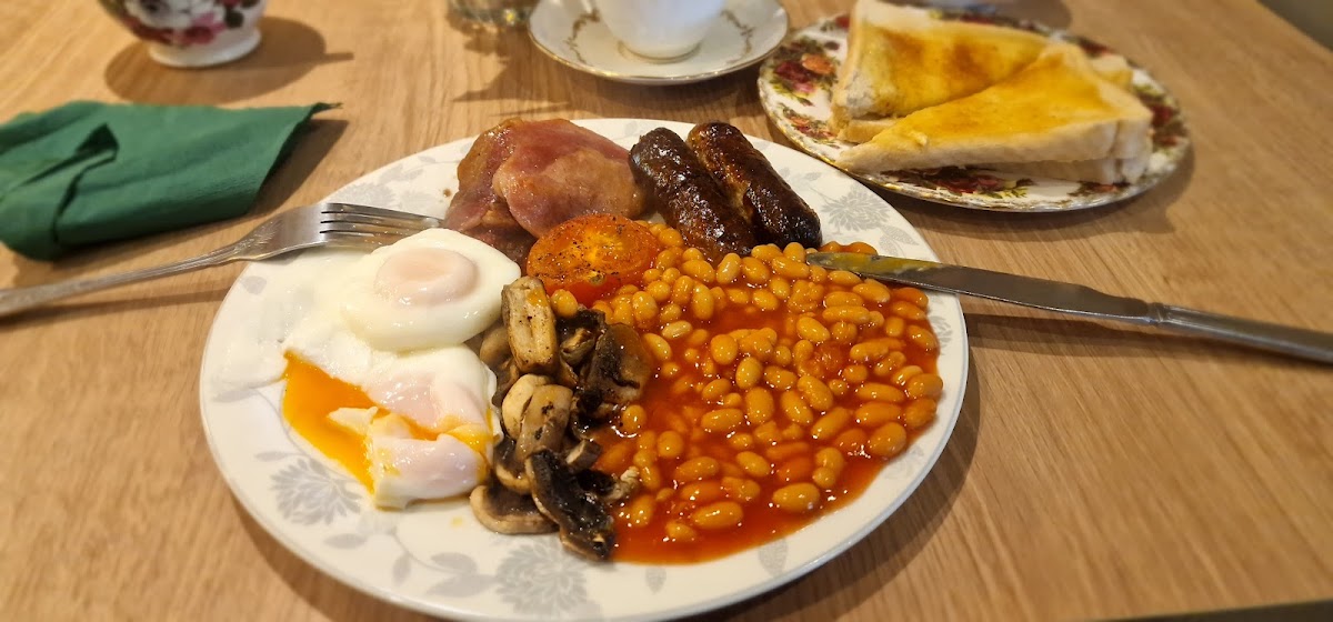 Lovely little cafe... gets busy quickly so booking advised.. the young girl who was serving was lovely.... got the impression she was new... we mainly ordered a large Cooked breakfast, one with poached and one with scrambled egg.... the young girl was still making the drinks and the food started piling up.... all while the tables started filling up.... the scrambled egg appeared to have been microwaved and the beans.. everything else tasted lovely.... I just felt that if the ladies cooking could have supported by helping to bring the food out or offering the girl doing coffees then it may have run a bit smoother.... the cheesecakes I'm told are lovely.... we took 2 to takeaway :) xx